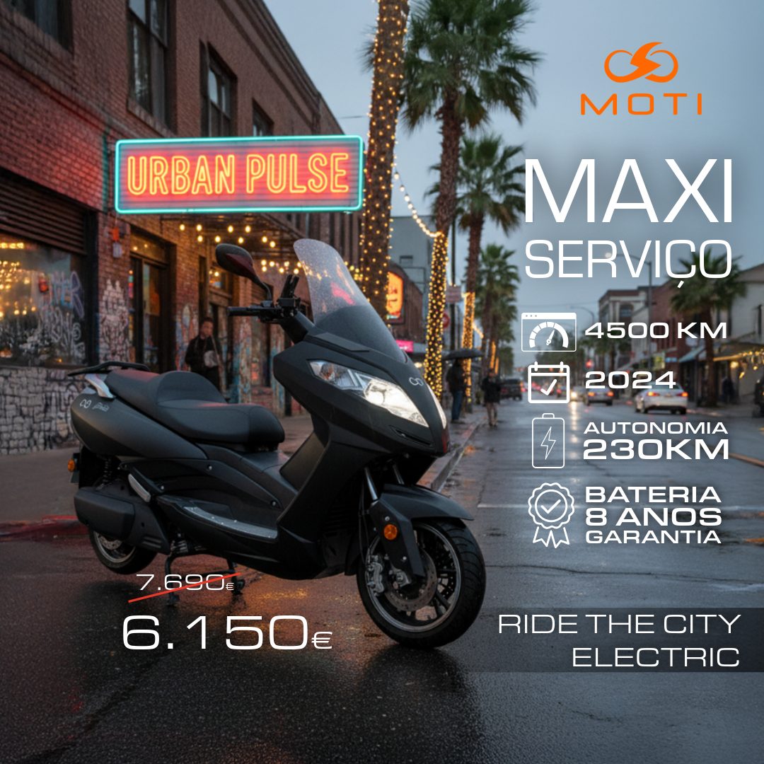 A MAXI é uma Scooter equivalente à categoria de 125cc, com uma potência de 9KW, autonomia de 230Km com uma bateria de capacidade de 11,23KWh / 156AH com carga semi-rápida em qualquer tomada doméstica